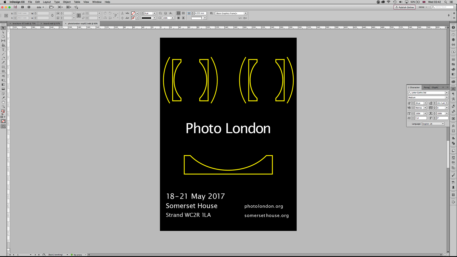 Photo London is an international contemporary fair held in London’s Somerset house in May and brings together the world’s leading galleries in a major international photography fair. You are asked to create the visual identity for Photo London and to design the catalogue that will accompany the exhibition.