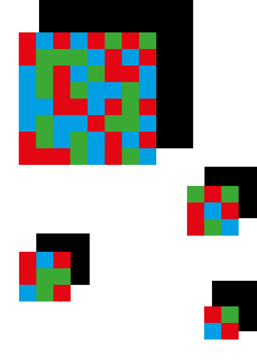 The branding colours were taken from the submitted photos to connect with the exhibition. The shapes that defined the final identity were taken from the shapes of cameras and lenses.