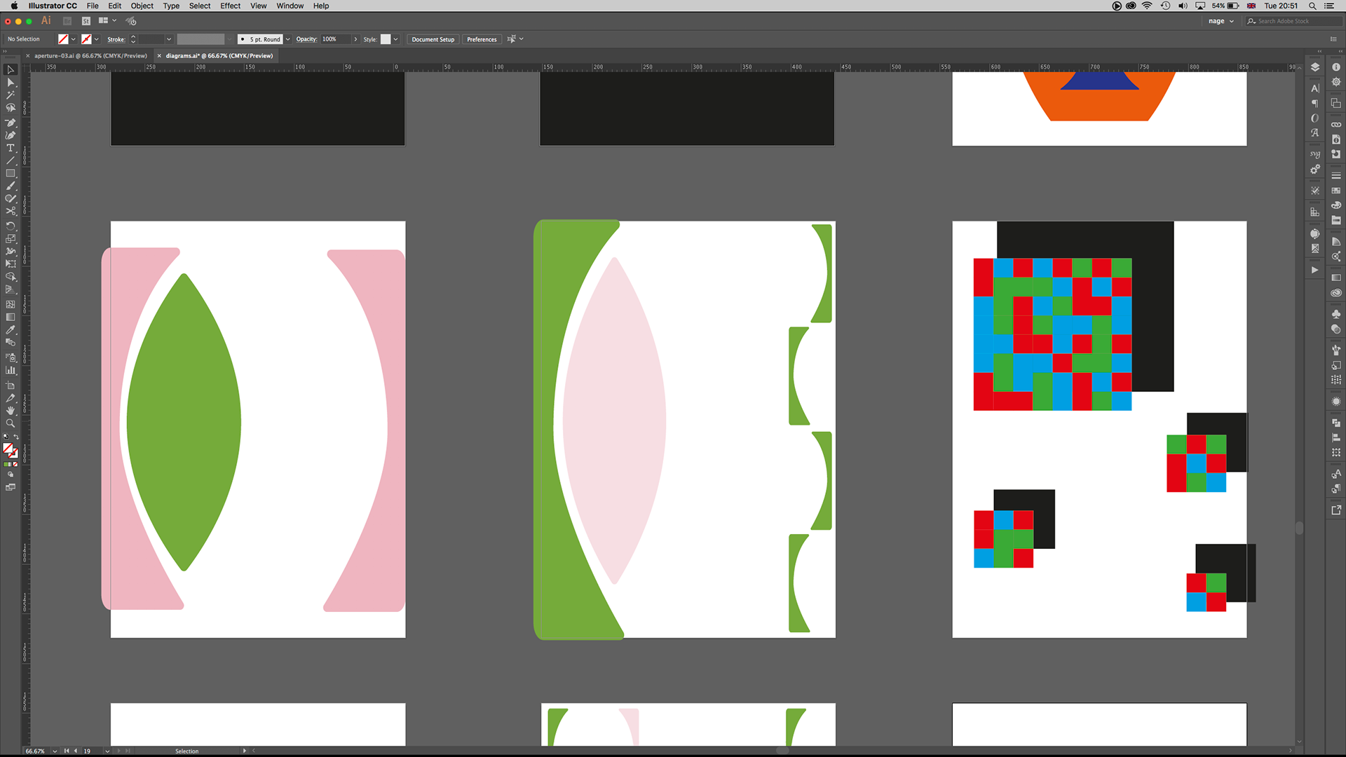 As you probably noticed above, when compared, this WIP version is a bit "wilder". I toned down the introductory pages of the catalogue for the final print.